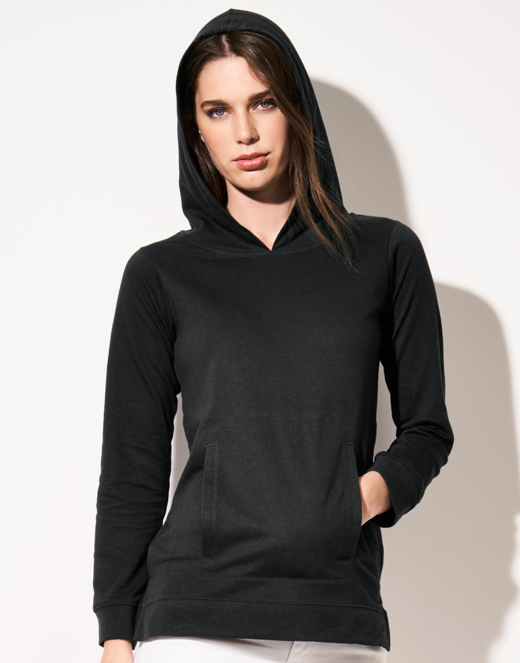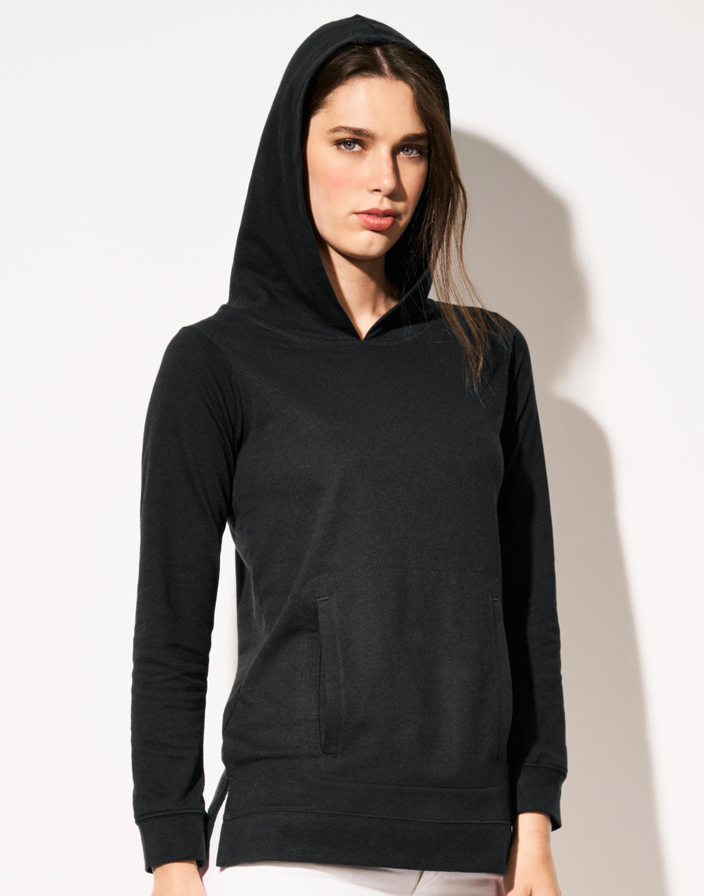 Detalles | 3XL +, Bolsillos laterales, Con capucha, Costuras laterales, Fácil de reetiquetar, Manga montada |